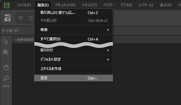 2. メニューの「編集」→「設定Ctrl + )」と進みます。