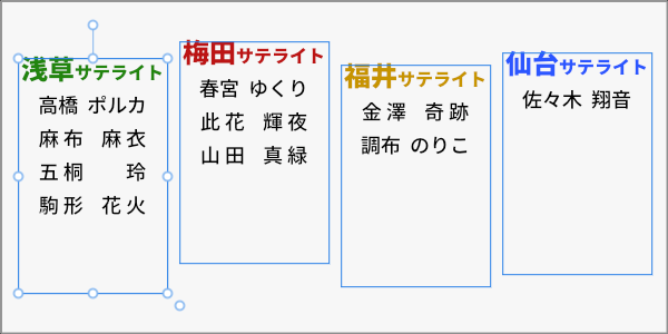 1. 4個の「フレームテキスト」があります。上下の位置はそろっていません。
