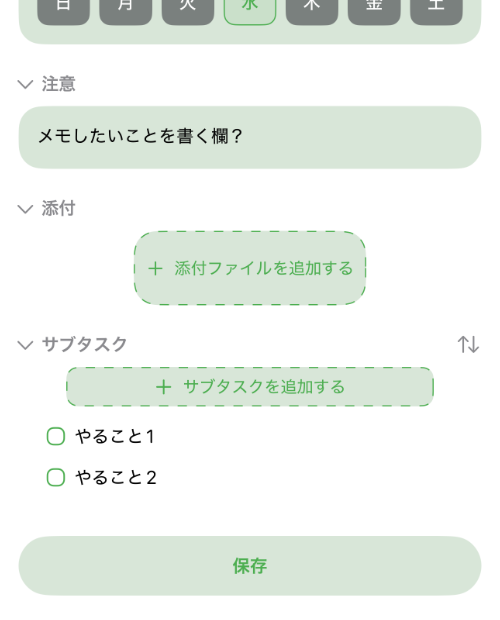 さらに、「メモ(注意)」を書いておいたり、「サブタスク」の追加もできます。