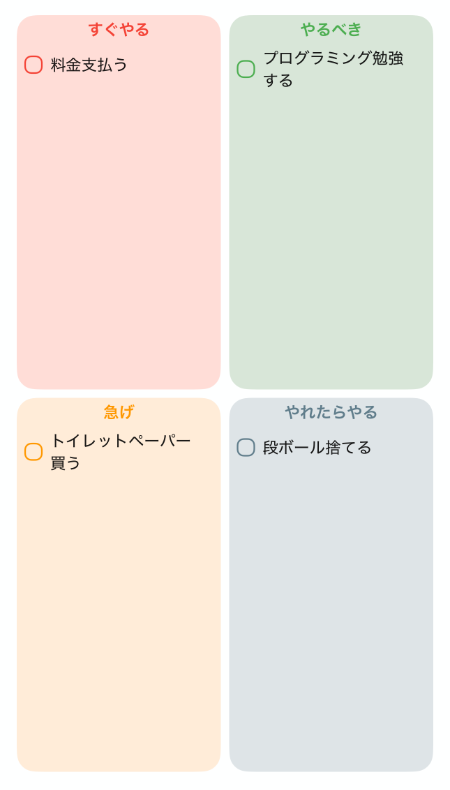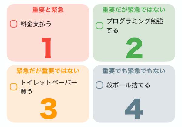 タスクを「重要」「緊急」で分けて管理