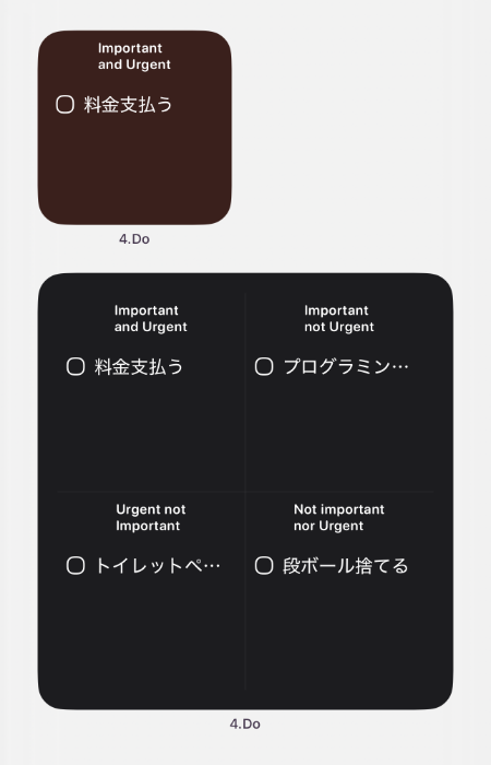大体の場合は「重要と緊急」の表示だけで間に合うと思うので、「2×2マス」のウィジェットで良いでしょう。