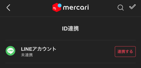 - メルカリの「ID連携」の画面です(アプリの「マイページ」→「個人情報設定」→「ID連携」)。ここから「LINEアカウント」の「連携する」をタップします。