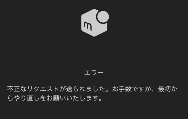 - 「不正なリクエストが送られました。お手数ですが、最初からやり直しをお願いいたします。」というエラーが出てしまいます。しかし、このページを閉じずに……