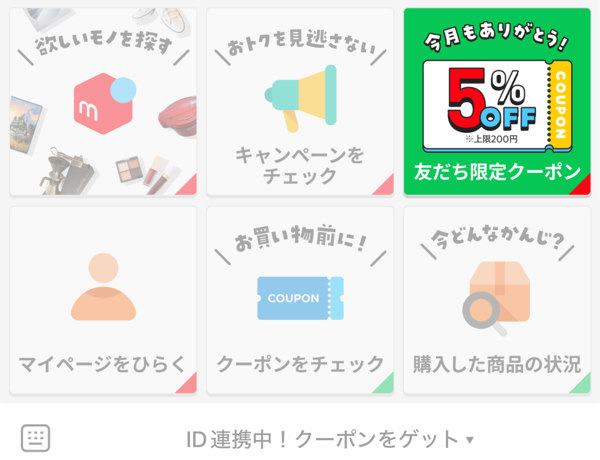 - LINE のメッセージ画面の「メニュー」も連携済みのものに変わっています。LINE との連携ができたのは間違いなさそうです。