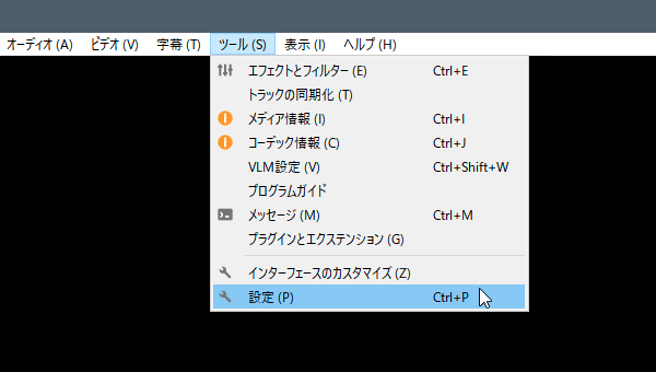 - メニューの「ツール」→「設定( Ctrl + P )」と進みます。